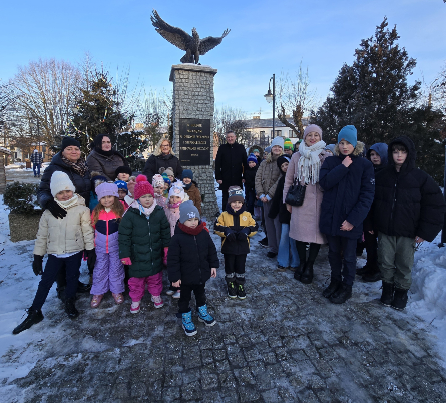 W dniu 22 stycznia 2026 roku w Kikole odbyły się uroczystości upamiętniające 163. rocznicę wybuchu Powstania Styczniowego oraz 81. rocznicę wyzwolenia miasta spod hitlerowskiej okupacji. W wydarzeniu udział wzięli Burmistrz Kikoła Renata Gołębiewska, Przewodniczący Rady Miejskiej Kikół Dariusz Predenkiewicz, a także nauczyciele, opiekunowie, uczniowie oraz przedszkolaki z Zespołu Szkolno-Przedszkolnego w Kikole. Uczestnicy uroczystości złożyli kwiaty i zapalili znicze pod Pomnikiem wzniesionym w hołdzie walczącym i poległym w obronie Rzeczypospolitej Polskiej, znajdującym się na Placu Kościuszki w Kikole. Był to symboliczny gest pamięci i wdzięczności wobec bohaterów, którzy oddali życie za wolność Ojczyzny. Podczas spotkania w krótkim wystąpieniu Burmistrz Kikoła Renata Gołębiewska oraz nauczyciele podkreślili znaczenie pielęgnowania tradycji patriotycznych oraz przekazywania młodemu pokoleniu wartości, takich jak szacunek dla historii, odpowiedzialność i miłość do Ojczyzny. Serdeczne podziękowania kierujemy do wszystkich uczestników uroczystości, a w szczególności do inicjatorów wydarzenia – Agnieszki Kwidzyńskiej oraz Ireneusza Bednorza, za zaangażowanie, trud organizacyjny i dbałość o kształtowanie postaw patriotycznych wśród dzieci i młodzieży.