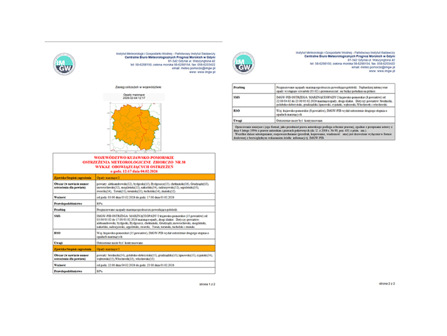 OSTRZEŻENIA METEOROLOGICZNE ZBIORCZO NR 38